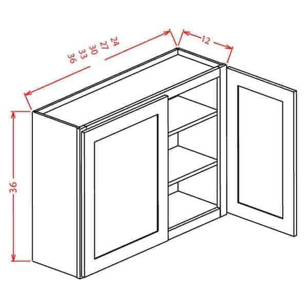 Vanity Base: 36"Wx21"Dx34-1/2"H 2 doors, 3 Drawers on Left