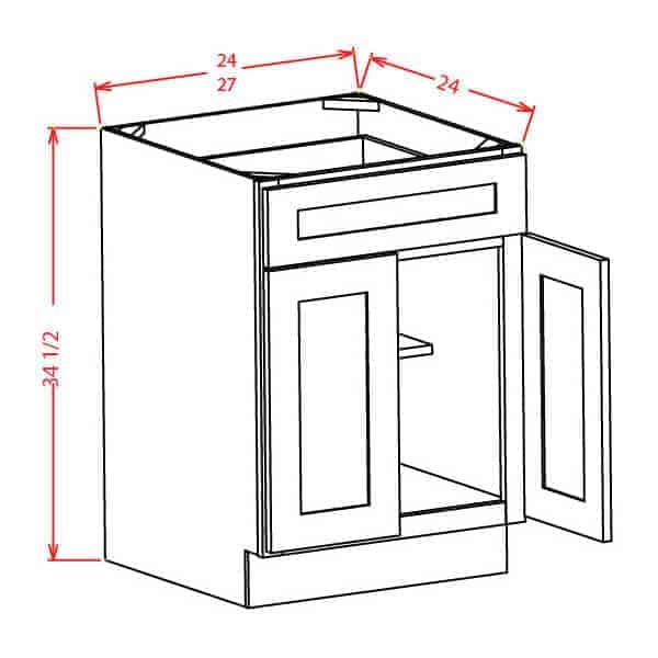 Vanity Sink Base Cabinet - 27"W X 21"D X 34-1/2"H-2D-1 False Drawer