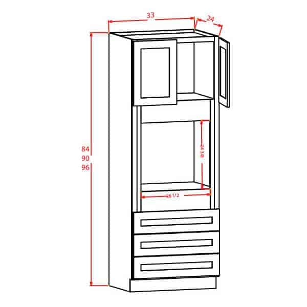 Universal Oven Cabinet - 33"W X 96"H X 24"D-2D-3DRA-1S - Opening 26-1/2"W X 24-3/8"H - Drawers can be removed and frame can be cut to accommodate larger oven units.