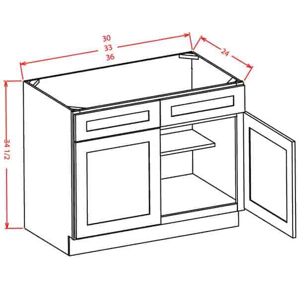 Vanity Sink Base Cabinet - 36"W X 21"D X 34-1/2"H-2D-1 False Drawer