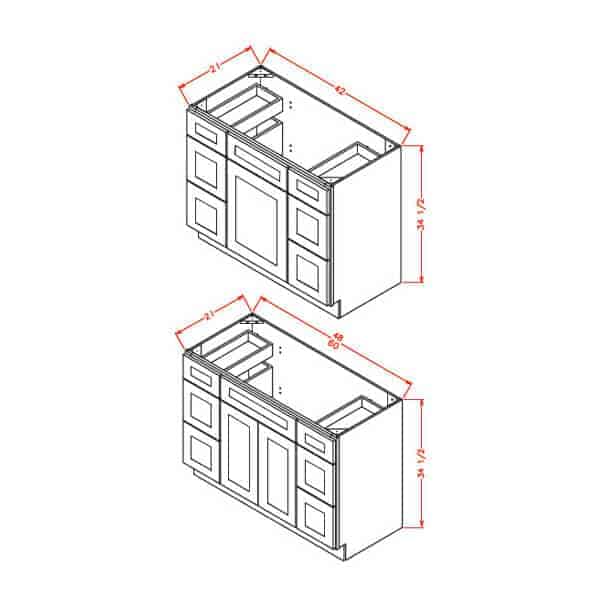 Vanity Double Drawer Base Cabinet - 42"W X 21"D X 34-1/2"H